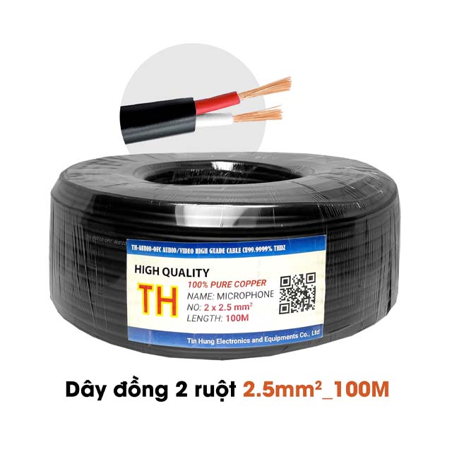 Dây loa sân khấu đồng là dây đồng 2 ruột chất lượng tốt. Dây đồng có 2 loại: 1.5mm2_100m và 2.5mm2_100m. Liên hệ để có thể được tư vấn kỹ hơn