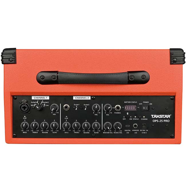 Loa đàn hát di động xách tay OPS 25 PRO có đặc tính âm thanh khác nhau của micrô và nhạc cụ, bộ khuếch đại công suất chuyển đổi chế độ và các nút điều chỉnh cân bằng, âm vang và độ trễ độc lập được thêm vào để làm cho âm thanh hài hòa và đẹp hơn
