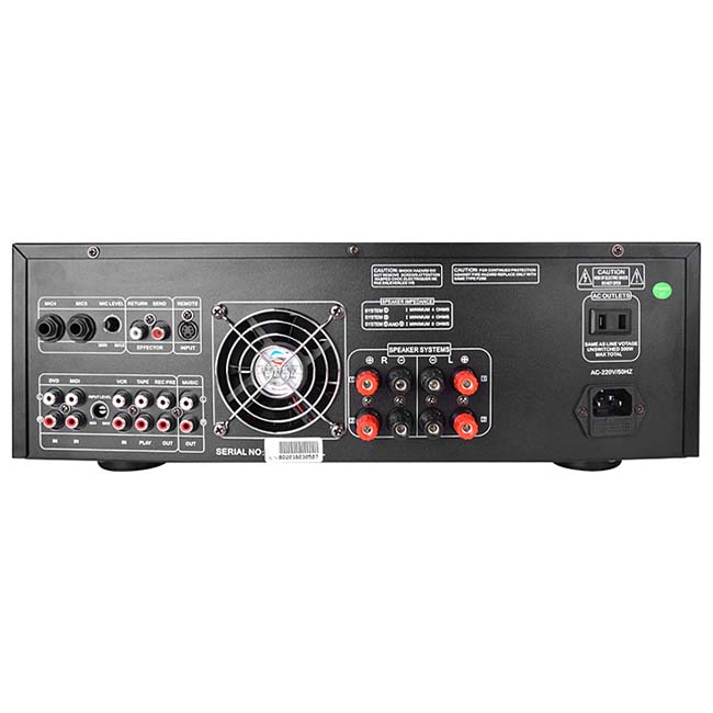 -Thiết kế đầu ra song song của hai nhóm A/B cho phép kết nối 2 cặp tủ loa 6-8Ω khi nguồn điện cho phép
