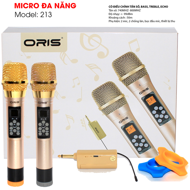Micro không dây đa năng Oris 213 có nút hỗ trợ chỉnh Bass, Treble và Echo ngay trên thân mic. Phù hợp kết nối với các thiết bị âm thanh như: Mixer, Amply, Loa kéo hay tất cả đầu vào micro có cổng 6 ly (6.5mm). Giúp linh hoạt cho các nhu cầu sử dụng.