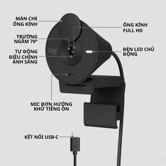 - Thân thiện với môi trường: Webcam này được sản xuất với ít nhất 48% nhựa tái chế, thể hiện cam kết với môi trường.