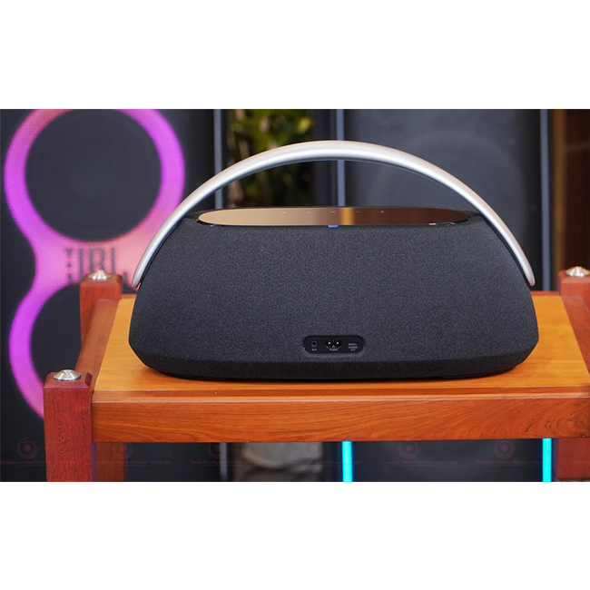 -Harman Kardon's Go + Play 3 kế thừa kiểu dáng quen thuộc nhưng ở thế hệ mới nhất có bảng điều khiển cảm ứng ở mặt trên bằng kính cường lực và hoàn toàn trực quan khi sử dụng. Vải lưới tản nhiệt