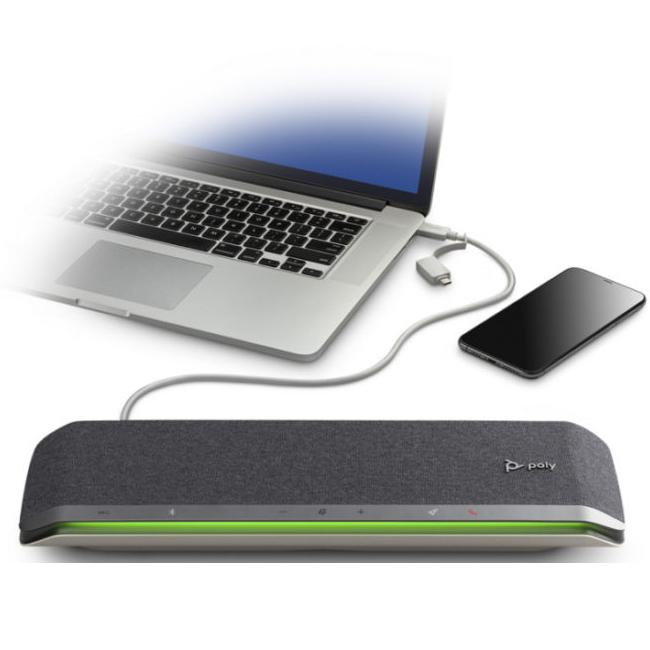 oa ngoài thông minh Poly Sync 60 USB / Bluetooth® được thiết kế cho các phòng hội nghị vừa và nhỏ với chất lượng âm thanh vượt trội nhờ vào sử dụng đôi loa công suất lớn. Lắng nghe âm thanh rõ nét hơn với tích hợp sáu micrô có khả năng tập trung và theo dõi giọng nói, loại bỏ mọi tiếng ồn, ngay cả ở khoảng cách xa. Poly Sync 60 có thể kết nối với bất kỳ thiết bị nào, qua cáp USB-A/ USB-C hoặc tùy chọn kết nối Bluetooth.