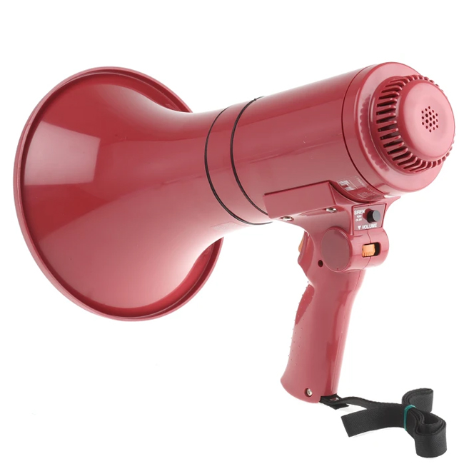 Thành phần: Còi, miệng megaphone, tay cầm, hộp pin: Nhựa ABS, màu đỏ