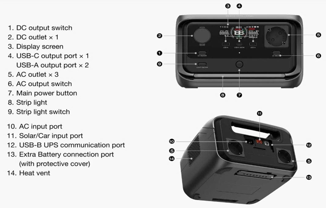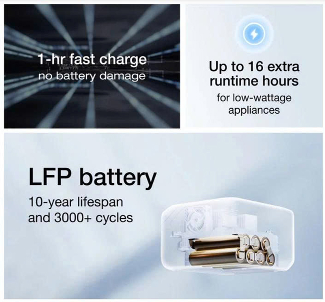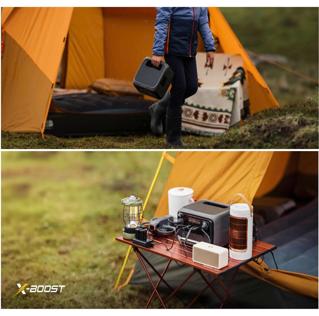 - Dung lượng và công suất: Dung lượng 858Wh cùng công suất định mức 600W, có thể đẩy lên 1200W với công nghệ X-Boost, vận hành được 90% thiết bị gia dụng nhỏ.