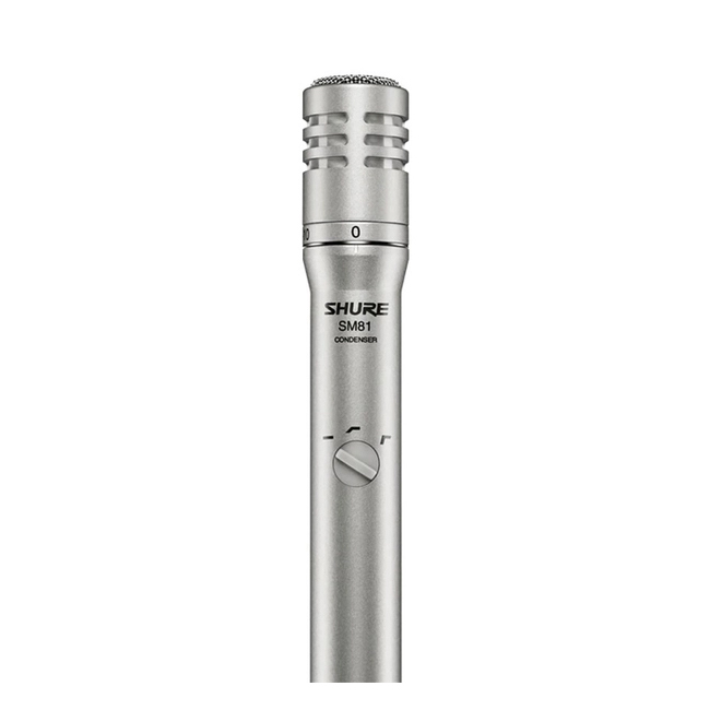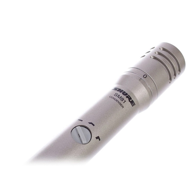 Micro nhạc cụ Shure SM81 condenser, búp hướng cardioid, đáp tuyến tần số rộng và độ ồn thấp.